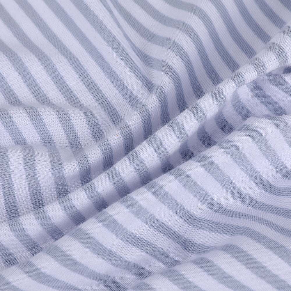 De comfortabele en ademende gebreide katoenen gestreepte stof voor vrouwen is gemaakt van zorgvuldig gematchte gemengde stoffen, samengesteld uit hoogwaardige katoen en zeer elastische spandex. Het is speciaal ontworpen voor vrouwen die hoogwaardige en comfortabele ervaringen nastreven. Het aandeel katoen in de stof zorgt voor een goede vochtabsorptie en ademend vermogen en een natuurlijke zachte aanraking, die helpt de huid droog te houden. Zelfs tijdens langdurige activiteiten of in omgevingen op hoge temperatuur, kan het de lichaamstemperatuur effectief reguleren en zweet ongemak verlagen. De toevoeging van spandex verbetert de elasticiteit en het herstel van de stof aanzienlijk, waardoor de kleding zich kan aanpassen aan een verscheidenheid aan lichaamsbewegingen met behoud van een stabiele vorm. Of het nu dagelijkse activiteiten of professionele sporten zijn, het kan precies de juiste hoeveelheid ondersteuning en vrijheid bieden. Deze stoffencombinatie verbetert niet alleen het dragen van comfort, maar verlengt ook de levensduur van kleding, het voldoen aan de dubbele behoeften van moderne vrouwen voor kledingfunctionaliteit en duurzaamheid. In termen van ontwerp hebben we het klassieke streeppatroon overgenomen en het weergegeven door delicate breien -technologie, die niet alleen de eenvoudige schoonheid van de streepelementen behield, maar de kleding ook een unieke visuele laag gaf.