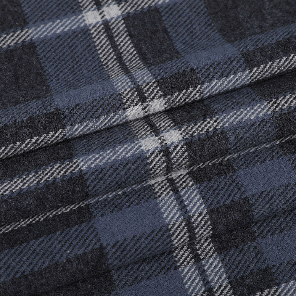 Dubbelzijdige Jacquard Soft en Comfortabele Wool Silk Plaid Break Fabric is gemaakt van geselecteerde grondstoffen door fijne proportionerende en geavanceerde technologie. De stofsamenstelling is 50% wol, 30% gesponnen zijde en 20% katoen. Deze wetenschappelijke verhouding zorgt ervoor dat de stof goede thermische isolatieprestaties handhaaft en tegelijkertijd goed ademend vermogen en comfort heeft. Als hoofdcomponent van de stof biedt wol een goede warmte en ademend vermogen, waardoor de stof comfortabel kan blijven in koude omgevingen. De toevoeging van gesponnen zijde verbetert de glans en gladheid van de stof aanzienlijk en verbetert tegelijkertijd de zachtheid en huidvriendelijkheid van de stof, waardoor de draagervaring aangenamer wordt. De toevoeging van katoen verbetert verder de duurzaamheid en hygroscopiciteit van de stof, zodat deze na langdurige slijtage droog en comfortabel blijft. Het dubbelzijdige Jacquard-proces is een hoogtepunt van deze stof. Door middel van precisieweven technologie presenteren zowel de voor- als achterkant een delicaat en uniform geplaid-patroon, dat niet alleen het visuele effect van de stof verbetert, maar ook de gelaagdheid en driedimensionaliteit van de stof verhoogt. Dit unieke proces stelt de stof in staat om rijke licht en schaduw te laten zien wanneer ze worden blootgesteld aan licht, waardoor de mode -gevoel en de sierwaarde van de stof worden verbeterd.