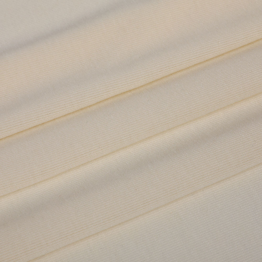 Zachte huidvriendelijke geribbelde spandex binnenkleding gebreide dameskledingstoffen voor vrouwen, ontworpen voor vrouwen, de ondergoed gebreide stof hanteert hoogwaardige mengtechnologie en combineert zorgvuldig 86% tencel, 5% zijde, 5% kasjmier en 4% spandex om goede functionaliteit en comfort te bieden. Tencel is de belangrijkste vezel, goed voor maximaal 86%. Met zijn milieuvriendelijke eigenschappen afgeleid van de natuur, goed ademend vermogen en goede vochtabsorptie, zorgt het voor de lichtheid en droogheid van de stof. Het natuurlijke glans en zachte gevoel van tencelvezel voegen een unieke textuur en visueel genot toe aan de ondergoedstof. Silk is goed voor 5%, en met zijn delicate vezelstructuur en goede gladheid, verbetert het verder de luxueuze aanraking en draagervaring van de stof. De goede vochtabsorptie en ademendheid van zijde helpen de huid droog en comfortabel te houden en de huid vers te houden, zelfs na langdurige slijtage. Cashmere is goed voor 5%, en met zijn natuurlijke warmte -retentie en zachte aanraking biedt het een goede warmteweerstand voor ondergoedstoffen. De fijnheid en zachtheid van kasjmiervezel kunnen de wrijving met de huid effectief verminderen en het comfort en het plezier van het dragen verbeteren. Spandex is goed voor 4%, en met zijn goede elasticiteit en herstel geeft het de stof goede ductiliteit en aanpassingsvermogen. De toevoeging van spandex stelt de stof in staat zacht en comfortabel te blijven en tegelijkertijd aan de behoeften van verschillende lichaamsvormen en activiteiten te voldoen, waardoor all-round vrijheid en flexibiliteit wordt geboden.