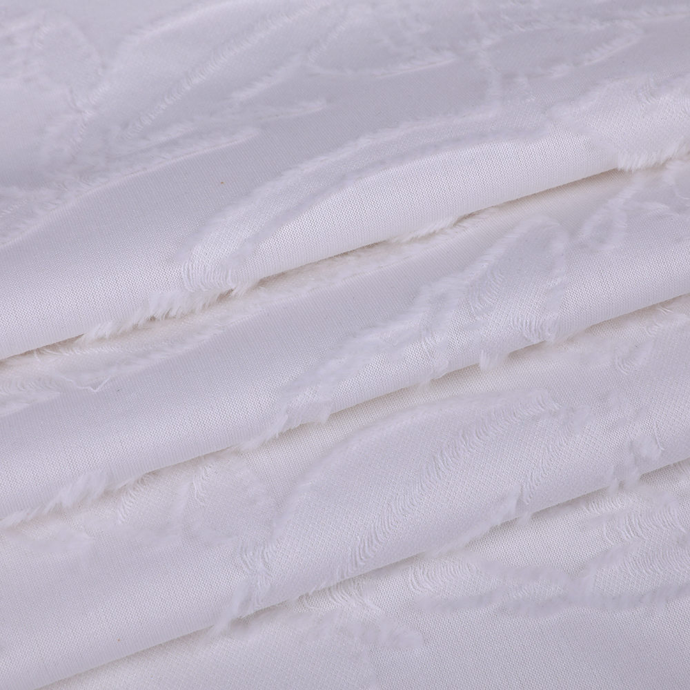 Jacquard trimdraad ademende luxe dame gebreide stof, gemengd met 90% hoogwaardig katoen en 10% fijne zijde. Deze unieke verhouding is ontworpen om de prestaties van de stof te optimaliseren, waardoor goed ademend vermogen en vochtabsorptie wordt gewaarborgd en de stof een unieke luxueuze aanraking te geven. In het stofontwerp gebruiken we een fijn jacquard -randproces en integreren we slim complexe patronen in de stof door handmatige vaardigheden. Dit ontwerp verbetert niet alleen het visuele effect van de stof, maar geeft het ook unieke artistieke waarde en esthetische betekenis. Tegelijkertijd zorgt het gebruik van een gebreide structuur ervoor dat de stof een goede elasticiteit en herstel heeft, die perfect past bij de lichaamsvorm en voldoen aan de dubbele behoeften van vrouwen voor comfort en schoonheid. Qua prestaties presteert deze stof goed. De toevoeging van katoenvezel zorgt ervoor dat de stof een goede vochtabsorptie en transpiratieprestaties heeft, die de huid droog en comfortabel kunnen houden, zelfs in omgevingen op hoge temperatuur. De delicate glans van zijde voegt een vleugje elegantie en luxe toe aan de stof en verbetert de algehele textuur. Bovendien heeft de stof ook goede slijtvastheid en rimpelweerstand, die de test van dagelijkse slijtage en wassen kan weerstaan, en de originele glans en textuur van de stof kan behouden.