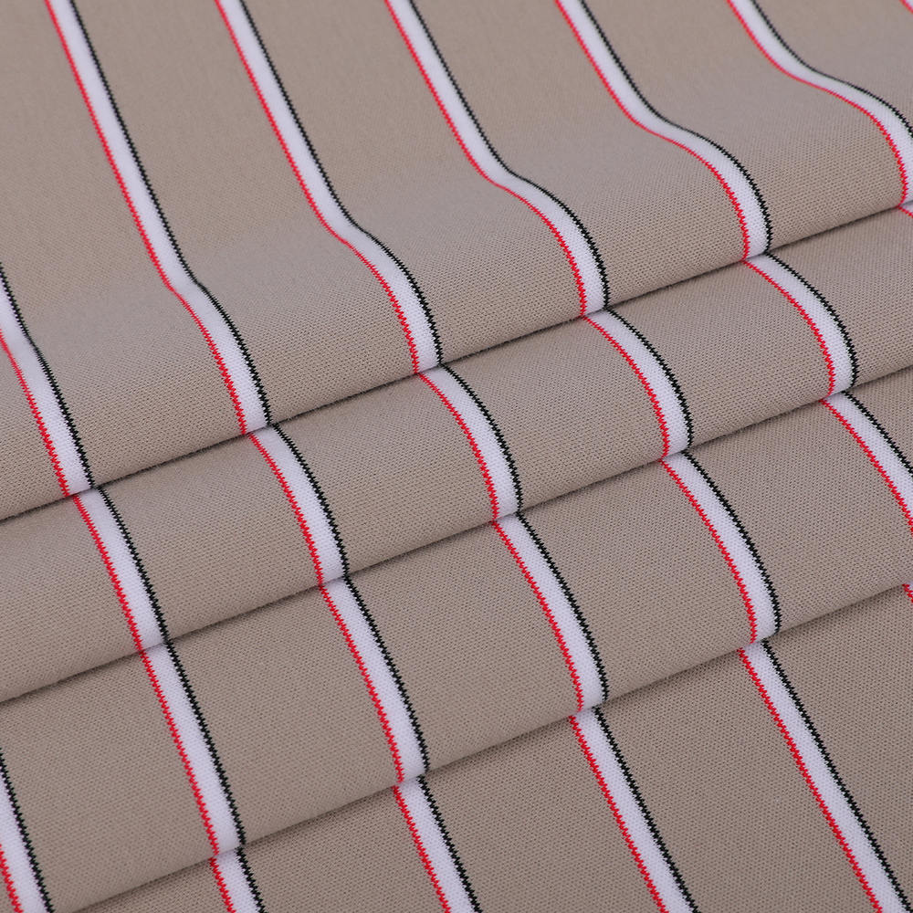 Comfortabel milieuvriendelijk La garen-geverfde gestreepte vloeibare ammoniak katoen t-shirt stof hanteert geavanceerde LA-garen-geverfde streeptechnologie. Een nauwkeurig garen-geverfd proces, zorgt voor de nauwkeurigheid en stabiliteit van het streeppatroon, waardoor het vervagen en vervagen na langdurig dragen of wassen effectief voorkomen. Vervormingsfenomeen, met delicate en langdurige visuele effecten. Het streepontwerp verrijkt niet alleen het uiterlijk van de stof, maar verbetert ook de mode en uniekheid van de kleding. Wat de verwerking van de stof betreft, gebruiken we vloeibare ammoniaktechnologie om de zachtheid en gladheid van de stof aanzienlijk te verbeteren door de microstructuur van katoenvezels te optimaliseren, terwijl we zorgen voor een goede absorptie van het ademend vermogen en transpiratieprestaties. De toepassing van deze technologie stelt de stof in staat om de lichaamstemperatuur effectief te reguleren met behoud van een natuurlijke en comfortabele aanraking, zich aan te passen aan verschillende klimaatomgevingen en de drager van het comfort van alle weersomstandigheden te bieden. Bovendien volgt deze stof strikt de principes van milieuvriendelijke productie en gebruikt ze hoogwaardige natuurlijke katoenen vezels als grondstof om overmatig gebruik van chemische stoffen te voorkomen en de impact op het milieu te verminderen. Als een milieuvriendelijk afwerkingsproces, vermindert het afwerken van vloeibare ammoniak verder afvalwateremissies en energieverbruik en voldoet aan internationale normen voor de groene productie. Wat de duurzaamheid betreft, is de stof behandeld met een speciaal proces en heeft het goede anti-pilling- en anti-rimpeleigenschappen. Het kan lang een soepel en knapperig uiterlijk behouden en aan verschillende draagbehoeften voldoen, zoals dagelijkse vrije tijd en lichtsporten. Tegelijkertijd zorgen zijn goede elasticiteit en herstel ervoor dat de pasvorm en het dragen van de kleding van de kleding.